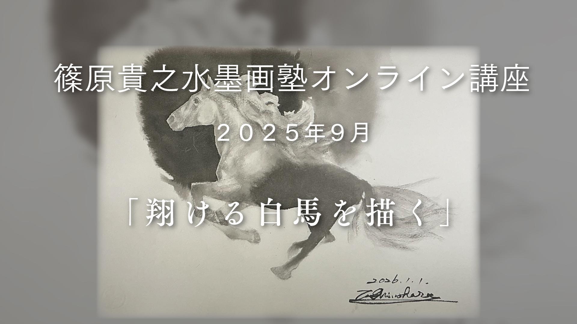 篠原貴之水墨画塾 2025年9月課題「翔ける白馬を描く」