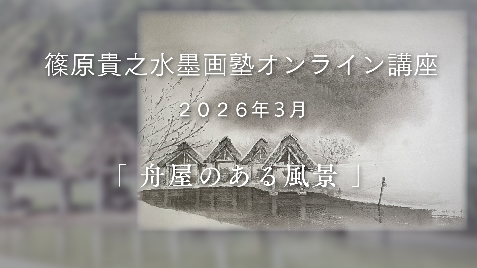 篠原貴之水墨画塾 2026年3月課題「舟屋のある風景」